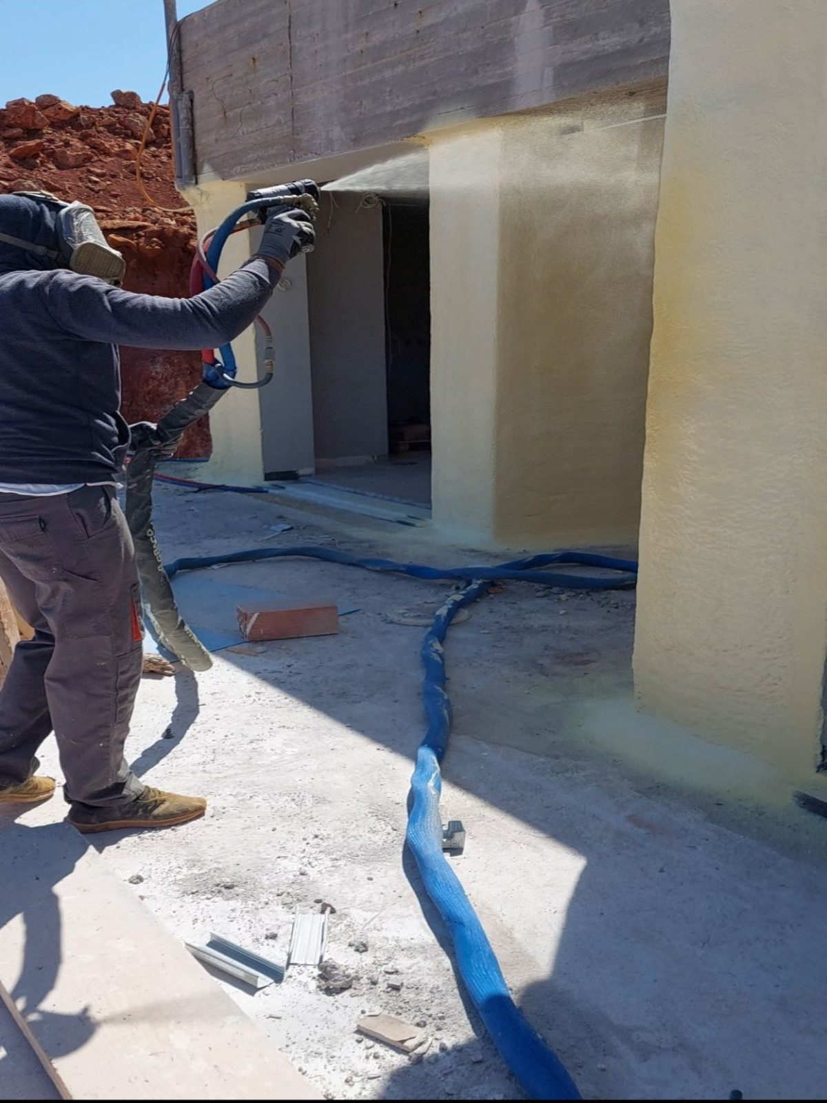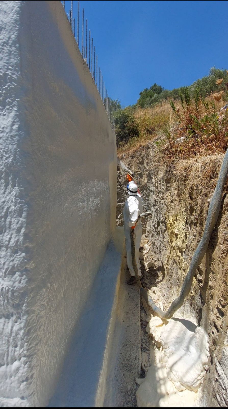 04. Θερμομόνωση Στεγανοποίηση Τοιχίου με Αφρό Πολυουρεθάνης και Πολυουρία.