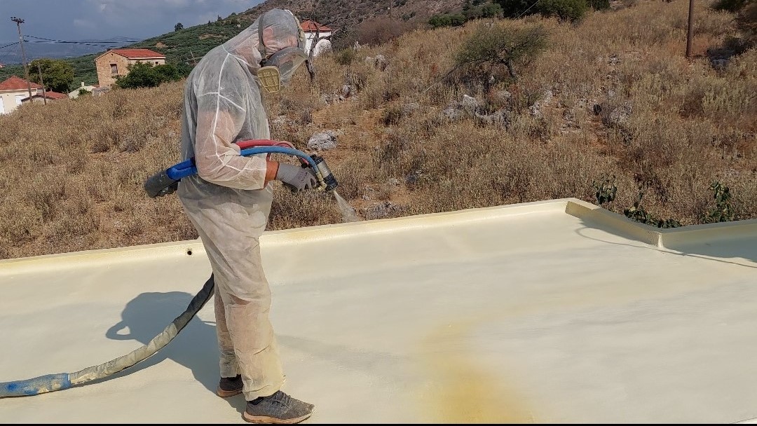 02. Θερμομόνωση Στεγανοποίηση Ταράτσας Αφρός Πολυουρεθάνης και Πολυουρία.